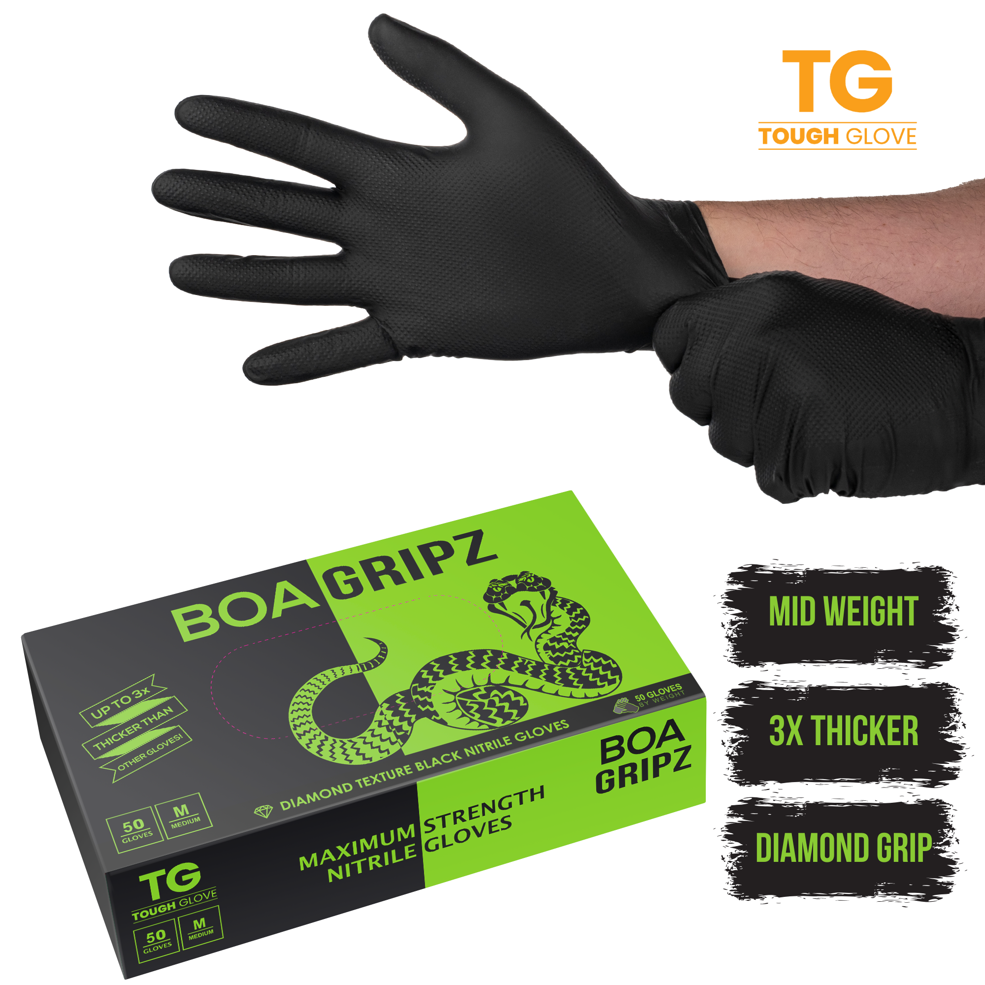 Gator Gripz by Tough Glove – 6x Thicker – Heavy Duty Diamond Textured Nitrile Gloves for Automotive Professionals